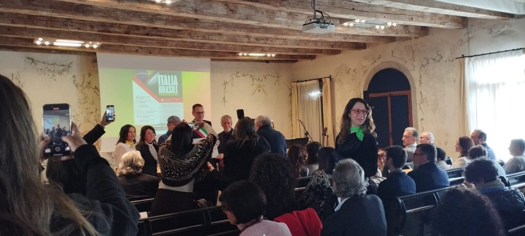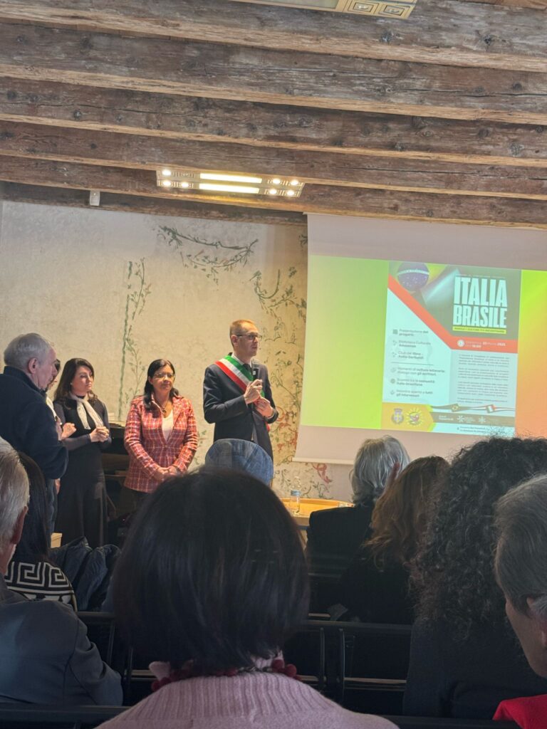 O projeto foi apresentado ao lado das autoridades locais, entre elas o prefeito de Conegliano, Fábio Chies, que realizou a abertura oficial, acompanhado por Laura Canzian, conselheira do Comune di Conegliano; Angela Buso, do Ufficio Gestione Associazioni ed Eventi Culturali; Helen Gnocchi, cônsul honorária do Brasil em Veneza e representante do embaixador Hadil Fontes da Rocha Vianna; Alberto Maniero, presidente da associação Veneto Brasil de Conegliano; e Mario Algeo, presidente da Associação Trevisani nel Mondo. Estiveram presentes também apoiadores fundamentais como Patrícia Siviero, Nicola Menin e Manuel da Cantina Varaschin de Valdobbiadene, que compartilharam a história de Américo Siviero, reforçando a importância da memória da imigração italiana no Brasil, especialmente neste ano que celebra os 150 anos dessa história.
