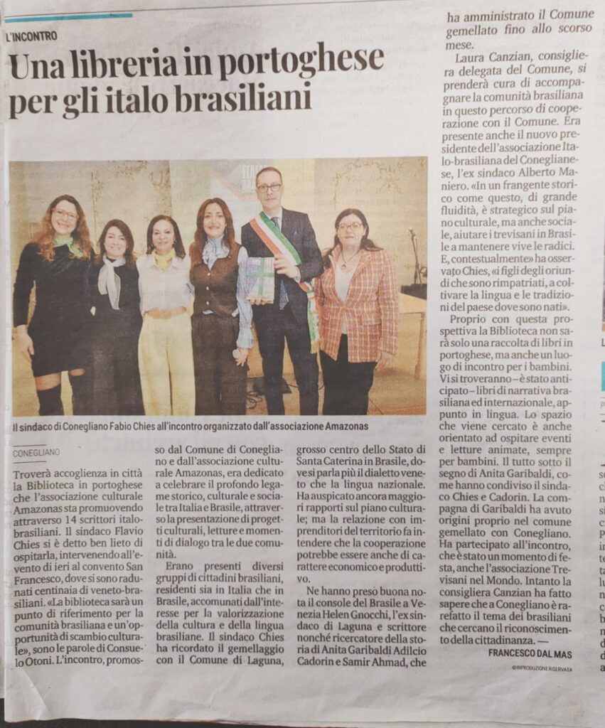 A iniciativa nasce da parceria entre a Associação Amazonas de Marcon e a Prefeitura de Conegliano, com o apoio da Conexão Feminina, de Ligia Moretto, da Virada Feminina Itália e de colaboradores que acreditam no poder transformador da cultura. A biblioteca tem como objetivo valorizar a língua portuguesa e a literatura brasileira, criando um espaço de encontro, aprendizado e troca de experiências.